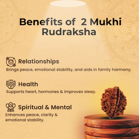 You can wear a 2 Mukhi Rudraksha around your neck to bring harmony and strong relationships. Keeping it close to your heart helps in emotional balance and peace.