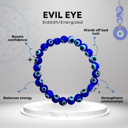 यह ब्रेसलेट केवल शक्तिशाली ईविल आई बीड्स से बनाया गया है, ताकि एक सरल लेकिन प्रभावी रक्षा कवच तैयार किया जा सके। यह प्राचीन परंपराओं पर आधारित है और रोज़मर्रा की ज़िंदगी में पहनने योग्य है – खासकर जब आप नकारात्मक ऊर्जा से बचाव चाहते हैं।