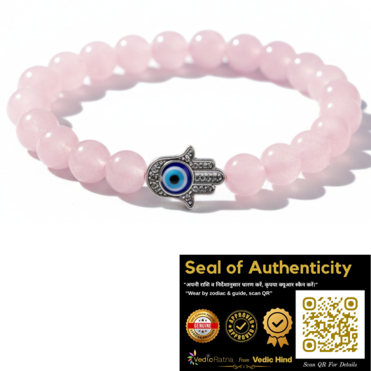 हमने रोज़ क्वार्ट्ज की प्रेम ऊर्जा को पाइराइट की समृद्धि वाली आभा के साथ जोड़ा है, जिसे ईविल आई और हम्सा प्रतीकों द्वारा संरक्षित किया गया है। यह संयोजन भावनाओं को संतुलित करता है, प्रेमपूर्ण ऊर्जा को आकर्षित करता है और नकारात्मक शक्तियों से रक्षा करता है।