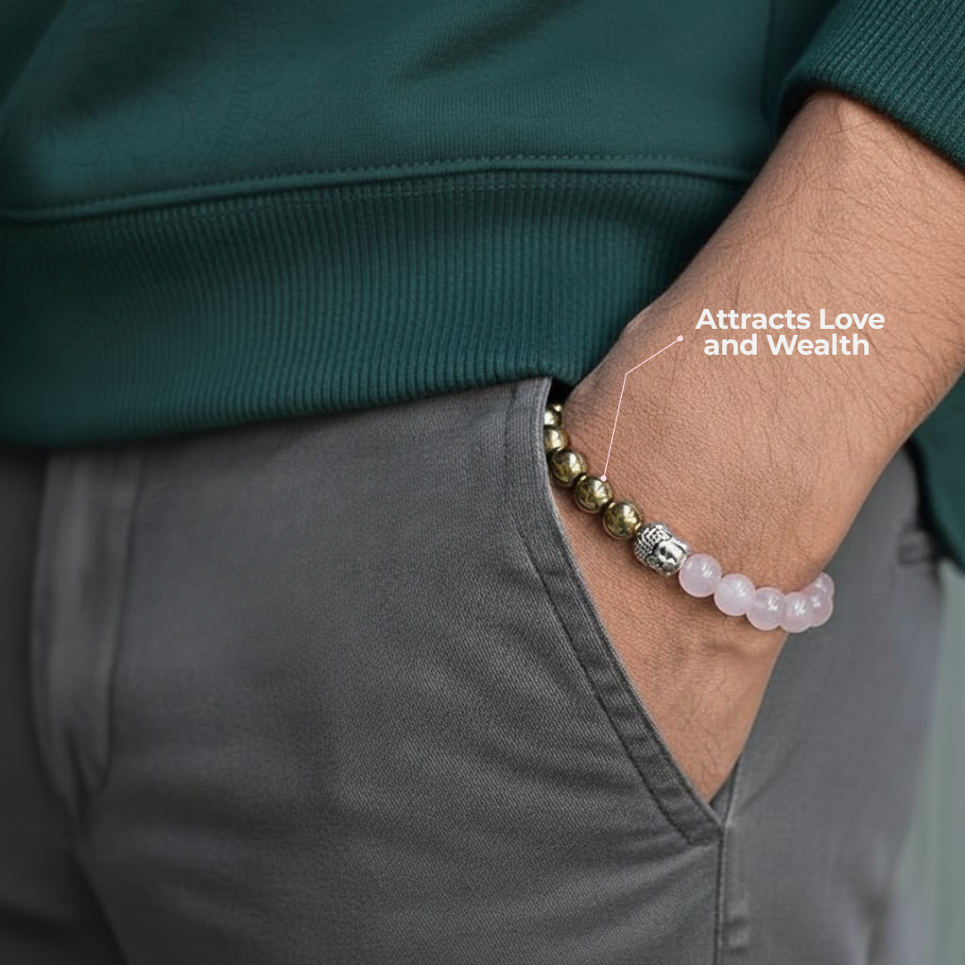 बाएं हाथ में पहनें और पहनने से पहले अपना इरादा (intention) तय करें — प्रेम और समृद्धि आकर्षित करने के लिए। यह ब्रेसलेट प्रेम, आत्मविश्वास और धन आकर्षित कर जीवन में संतुलन और सकारात्मकता लाता है।