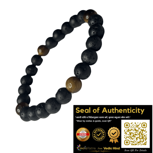 टाइगर आई (अग्नि तत्व) और लावा स्टोन (पृथ्वी तत्व) को मिलाकर यह शक्तिशाली ब्रेसलेट बनाया गया है जो अंदरूनी ताकत और भावनात्मक संतुलन देता है।